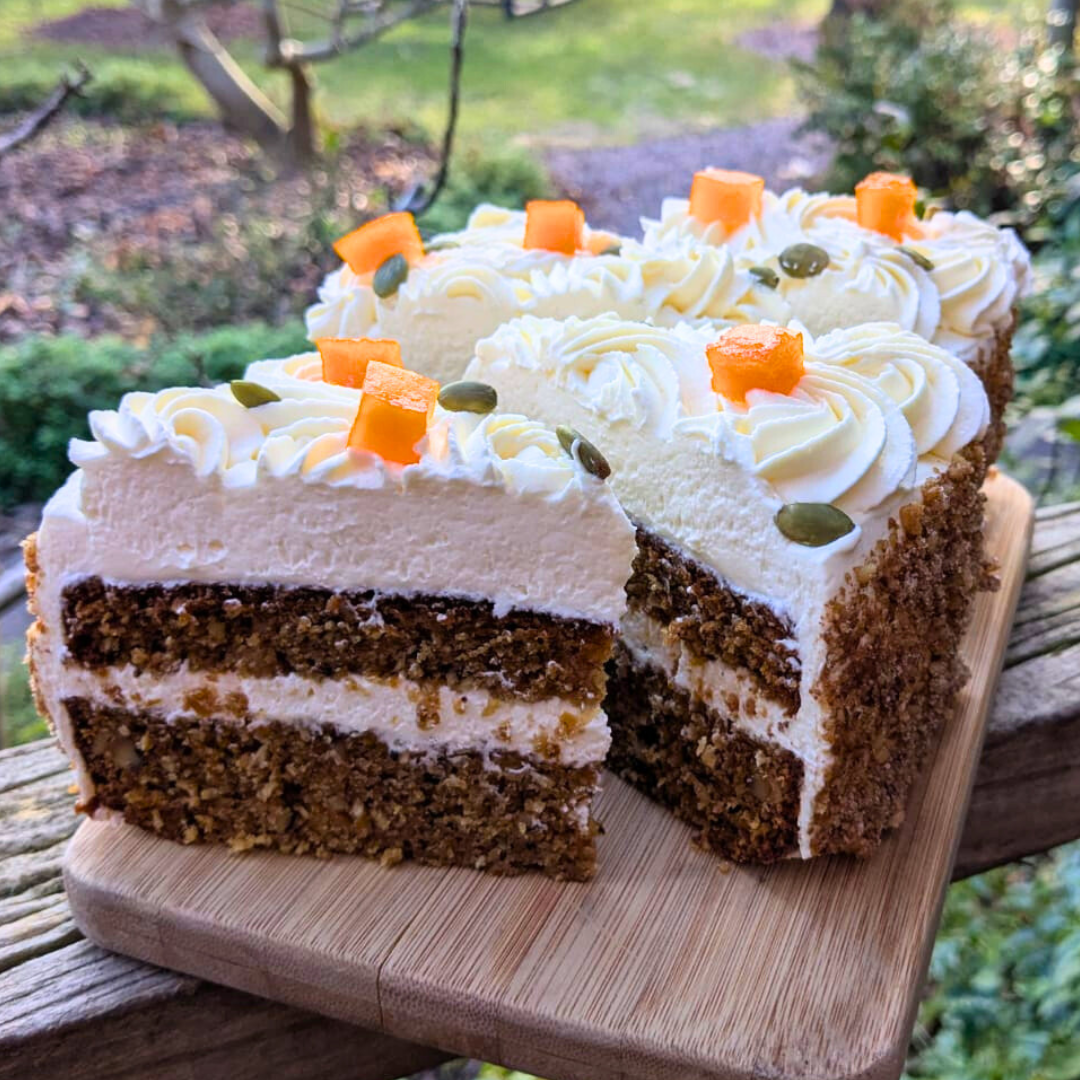Use decoratively on top of your cake, sprinke your pepita seeds and walnuts on top to finish.